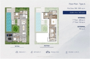 The project offers 3 villa layout types, each built over 2 levels. Internal living areas measure approximately 400 sqm, with total built-up areas of around 540 sqm. All bedrooms are arranged under one roof, with 2 located on the ground floor and 2 on the upper level. A dedicated maid’s room adds to a layout well suited to both short- and long-term family living.