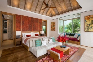 Oriental-inspired furniture and artwork, jewel-toned accents, and vaulted wooden ceilings bring warmth, richness, and character to each home, while carefully selected materials allow the villas to blend naturally with Phuket’s lush surroundings. Completion is expected in Q3 2026.
