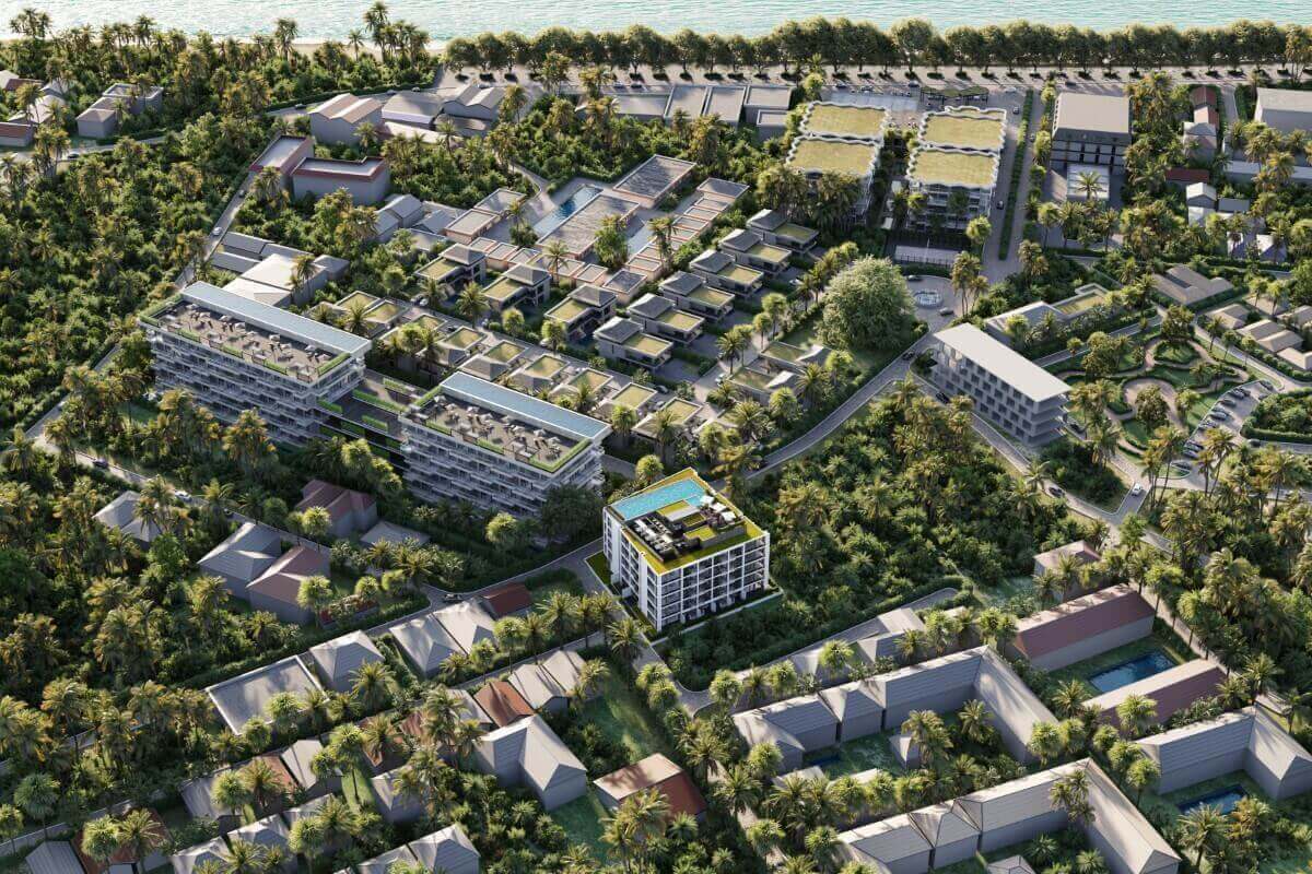 This is a single development located on a small side street behind the main Rawai Beach Road. It has 5 levels with 68 units of studio-2 bedrooms ranging from 31-64 sqm, scheduled for completion in 2026.