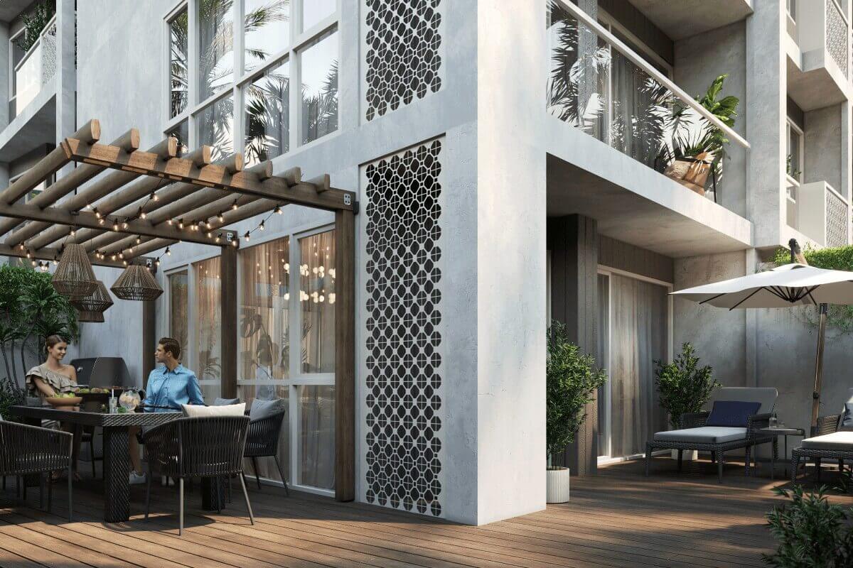 The condominium offers 5 unit types, each created for function and comfort. Studios start from 31 sqm, while the 1-bedroom units range from 43.5–49.5 sqm. For those needing more space, the 2-bedroom units range from 56–64 sqm. These feature generous living areas ideal for couples, families, or long-stay guests. All ground-floor apartments come with an extra-large terrace, giving you additional outdoor space.
