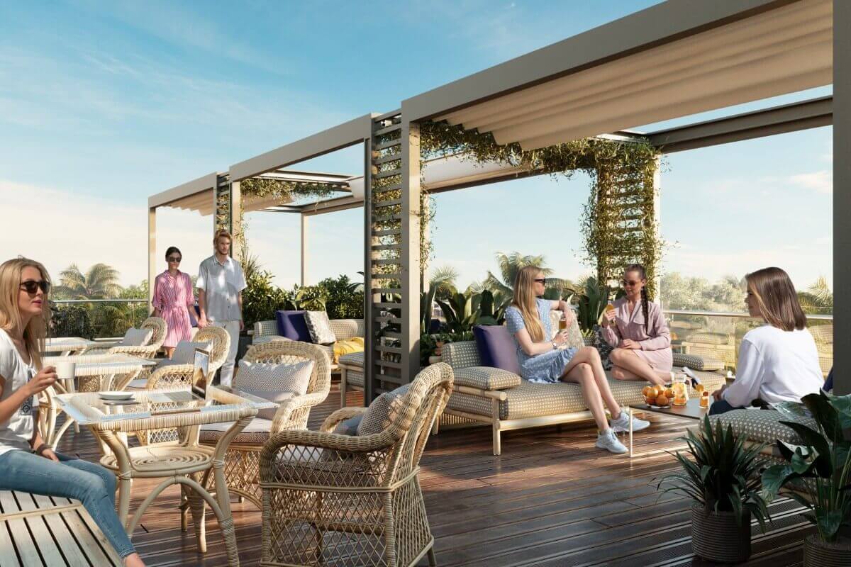 Residents enjoy a rooftop swimming pool with sea-breeze views, garden and rooftop lounging areas, underground parking, concierge services & shuttle services.