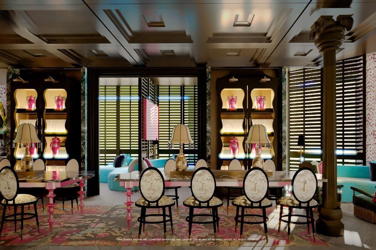 - Dining & Entertainment: BBQ long table, sky lounge, sky bar, and all-day dining spaces.