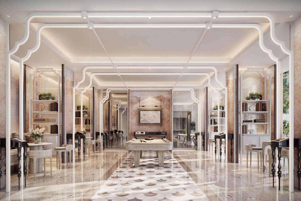 Enjoy an intercontinental lifestyle with a wide range of wellness and leisure facilities. Highlights include a library, meeting room, co-kitchen, and a 25-metre hydrotherapy pool. There’s also a kid’s pool, cabana deck, and a Technogym fitness center with Grohe AquaSymphony. Rooftop spaces feature a meditation zone, sunken seating, and pavilions with mountain and ocean views. Yoga decks and a kids’ creative area complete the resort experience.