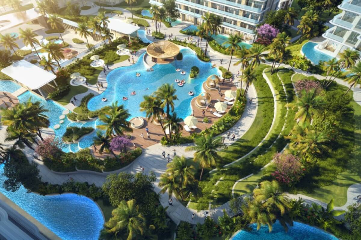 Over 1,700 sqm of swimming pool area and more than 8,000 sqm of landscaped parkland create a serene, resort-inspired setting with tropical gardens, shaded walkways, lounging decks, and a stunning waterfall. It also includes a co-working area, children’s reading room, outdoor play zones, and a kids’ club.