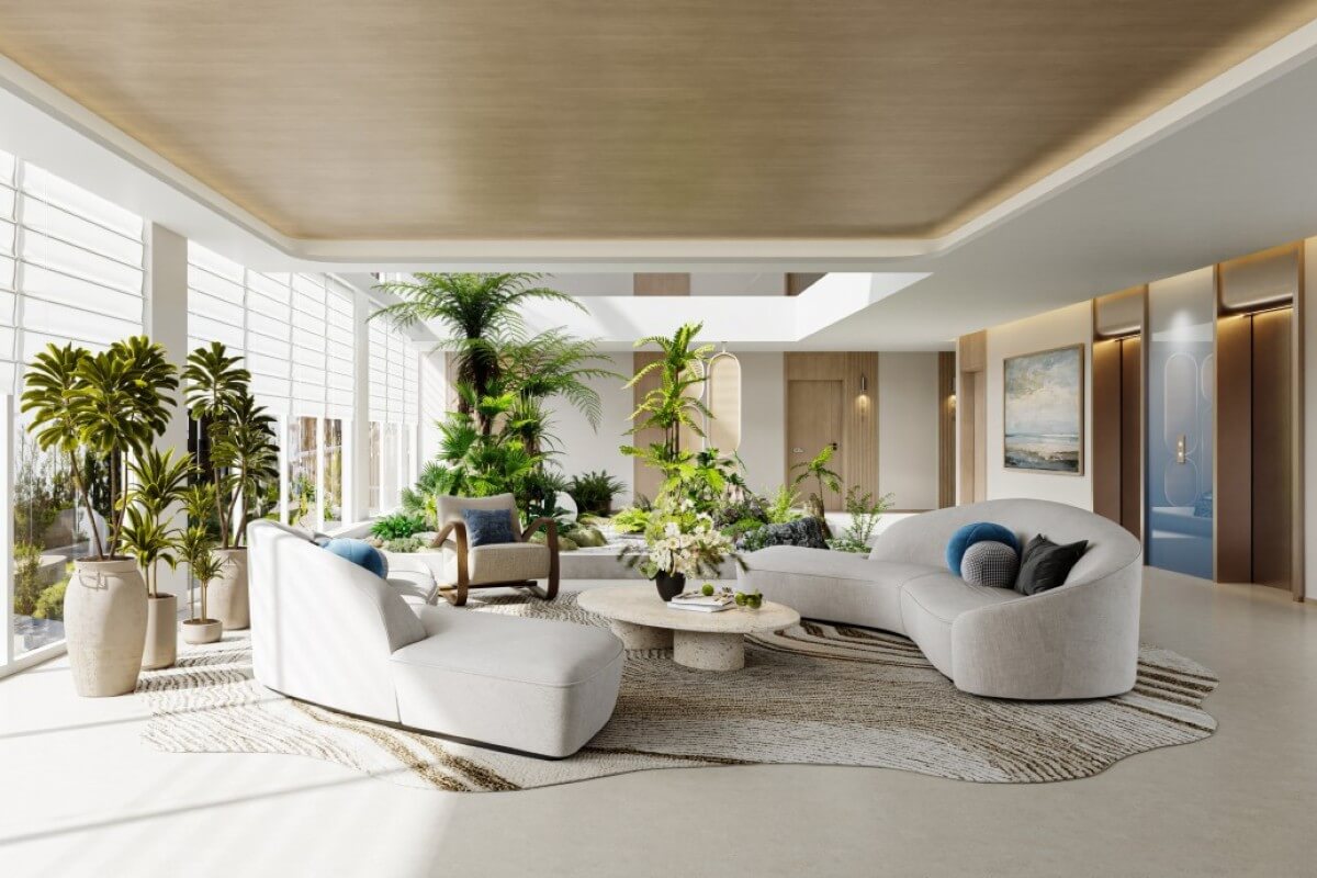 Over 1,700 sqm of swimming pools and more than 8,000 sqm of landscaped parkland create a resort-inspired setting with tropical gardens, shaded paths, lounging decks, and a waterfall centerpiece. Shared spaces include a co-working area, children’s reading room, outdoor play zones, and a kids’ club.