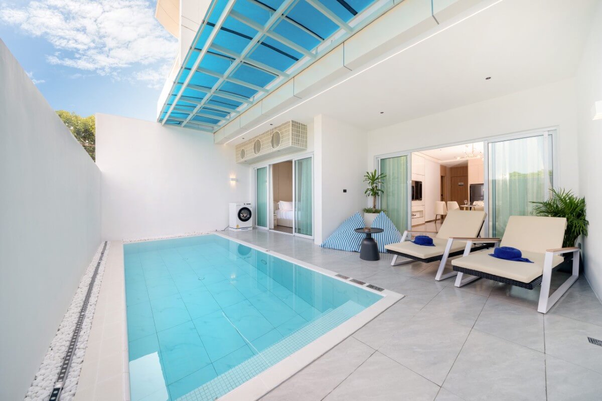 These 2-bedroom condos with private pools for sale near Chalong Bay and the International School of Phuket (ISP) in Rawai offer a lifestyle that feels like a private villa but with the convenience of condominium living. In addition, the homes are fully completed and move-in ready, giving buyers peace of mind.