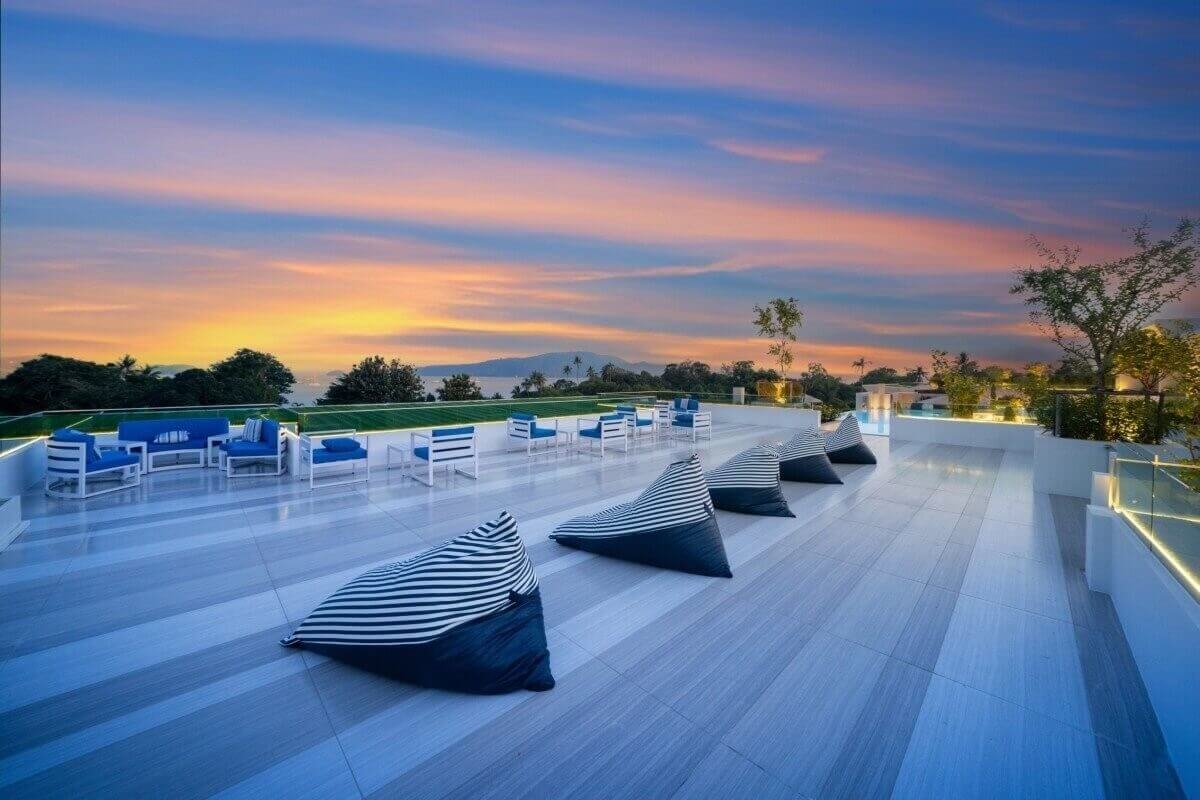 Residents enjoy an array of lifestyle amenities, including a bar, restaurant, spa, and fitness centre. A stunning infinity rooftop pool, complete with terraces and loungers, provides breathtaking views across Chalong Bay.