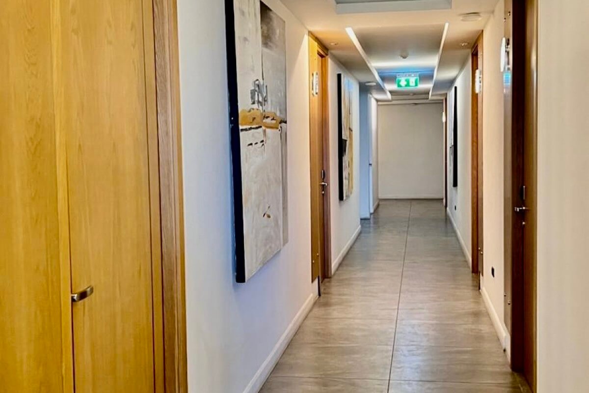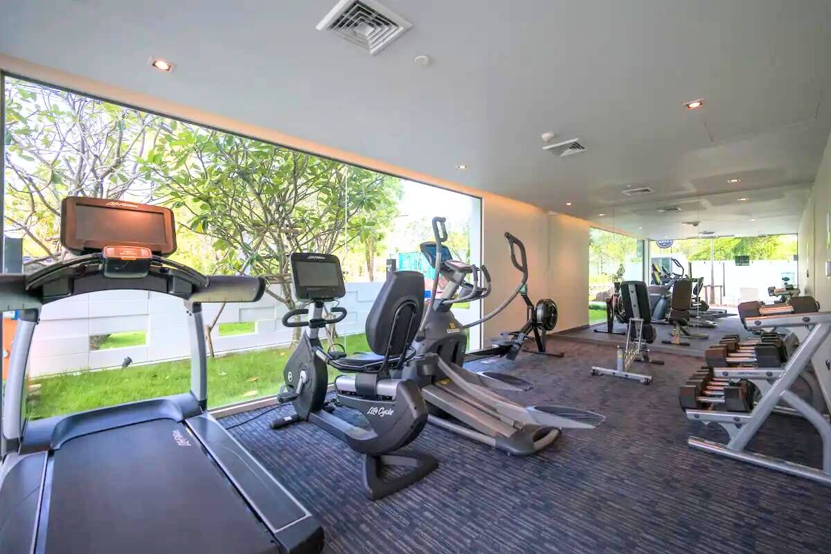 The development features a rooftop swimming pool, CrossFit area, and barbecue lounge. On the ground floor is a second swimming pool, restaurant, and communal relaxation areas. There is also an air-conditioned gym with modern equipment.