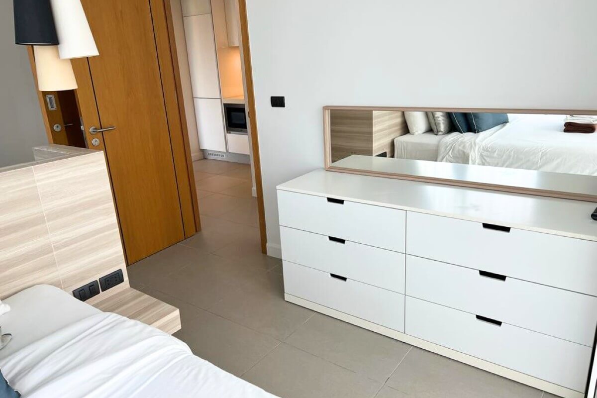 This 2-bedroom condo for sale in Bang Tao, Phuket is near Laguna Beach and sits right at the entrance to the Laguna Complex. The unit occupies a top-floor position, giving it a penthouse-style vibe with views over the surrounding area. It has recently been updated with new furniture and décor by the owner. Fully furnished and move-in ready, it offers a pristine, stylish and modern look.