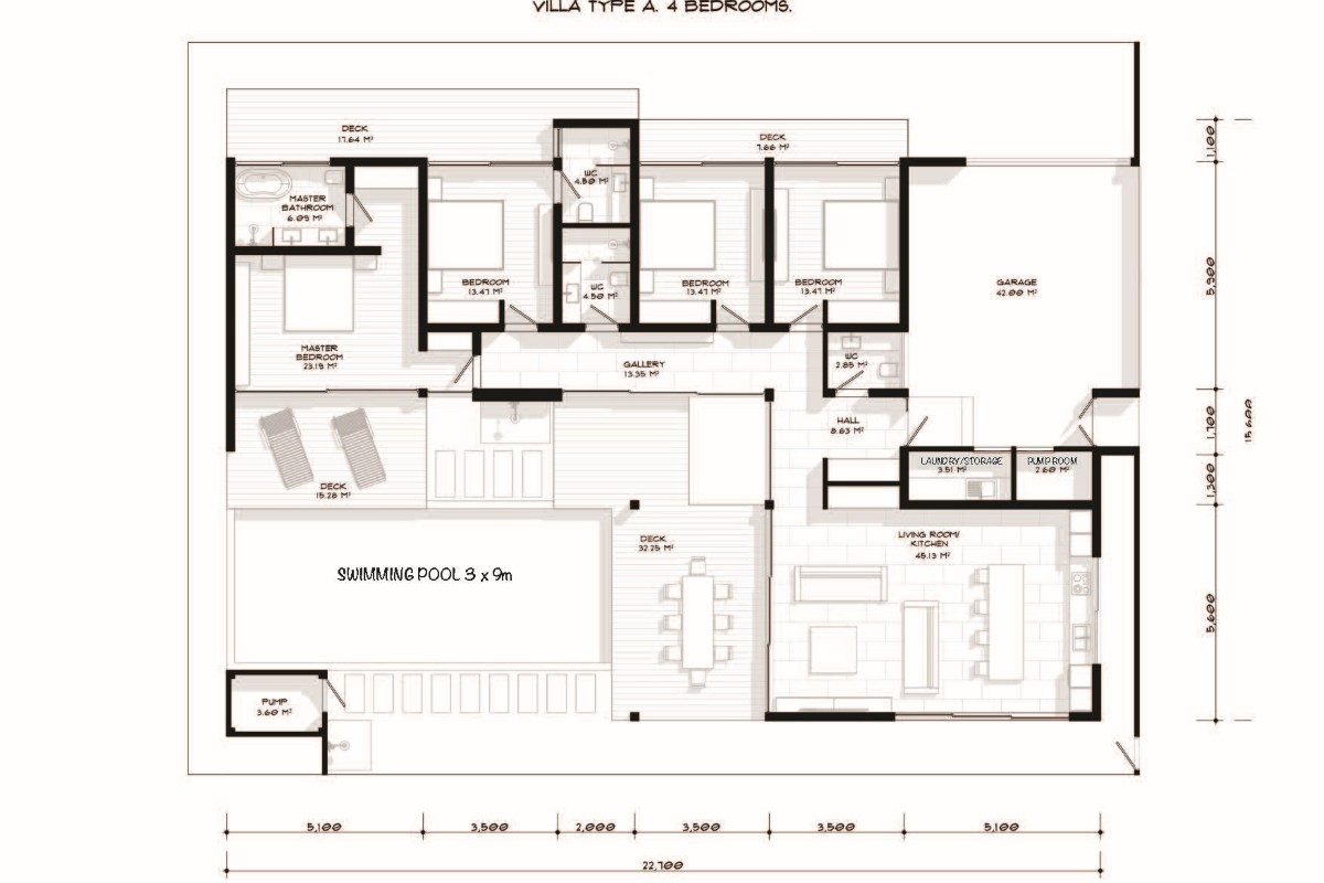 Each villa sits on a plot ranging from 408 to 513 sqm. A 27 sqm swimming pool and generous garden areas of around 145 to 200 sqm, offer plenty of room for outdoor dining, sun lounging, or lush tropical landscaping. There is also a 2 car undercover parking.