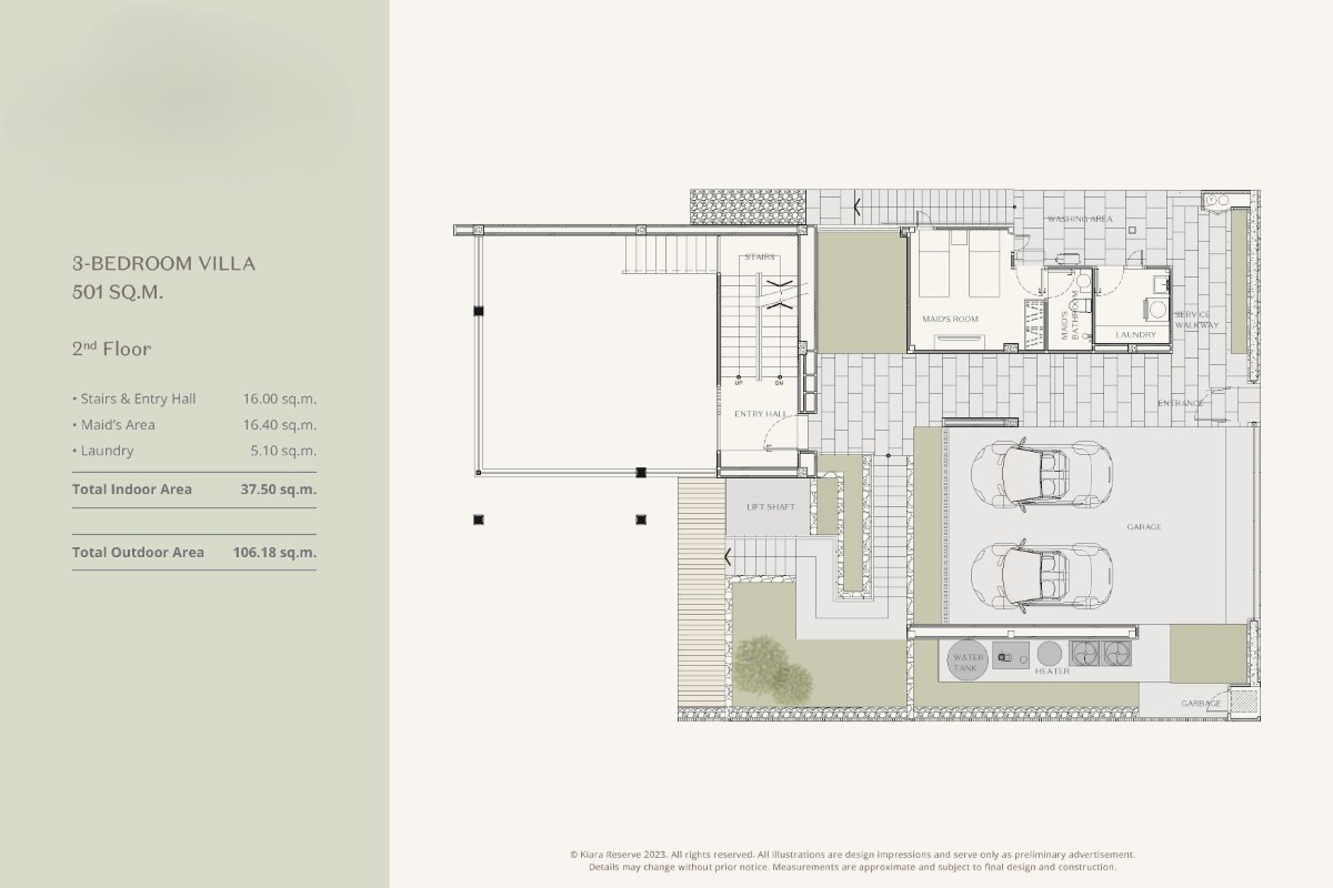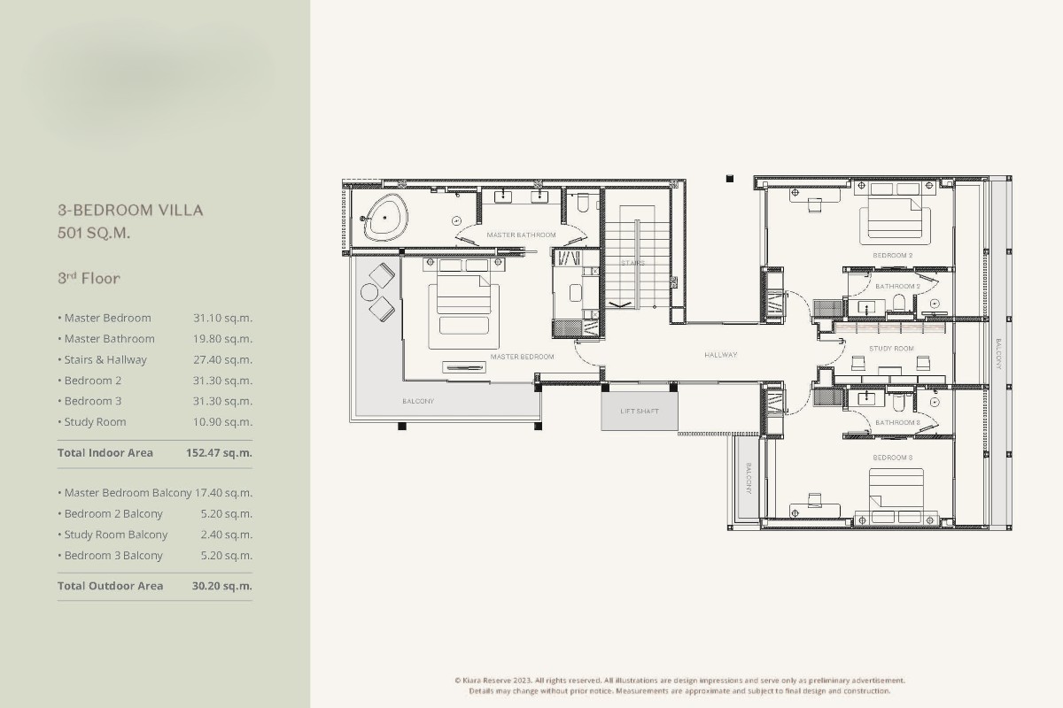 3-bedroom villas include covered parking for 2 cars and a 31.25 sqm private swimming pool.