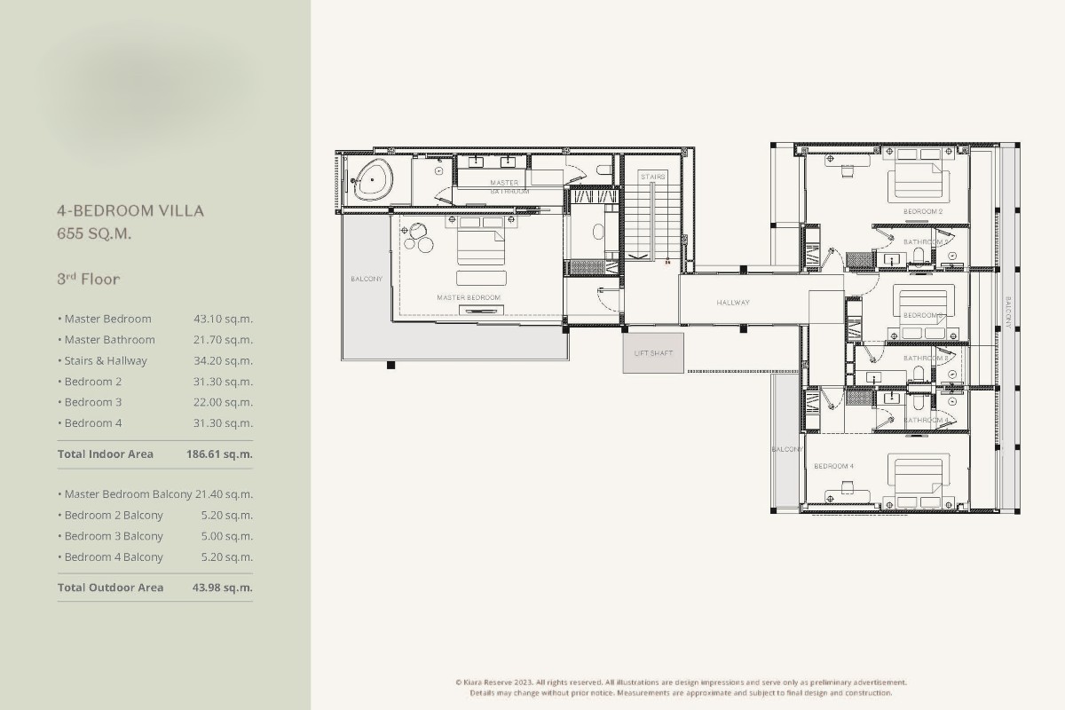 4-bedroom villas feature parking for up to 3 cars and a larger 36.58 sqm swimming pool.