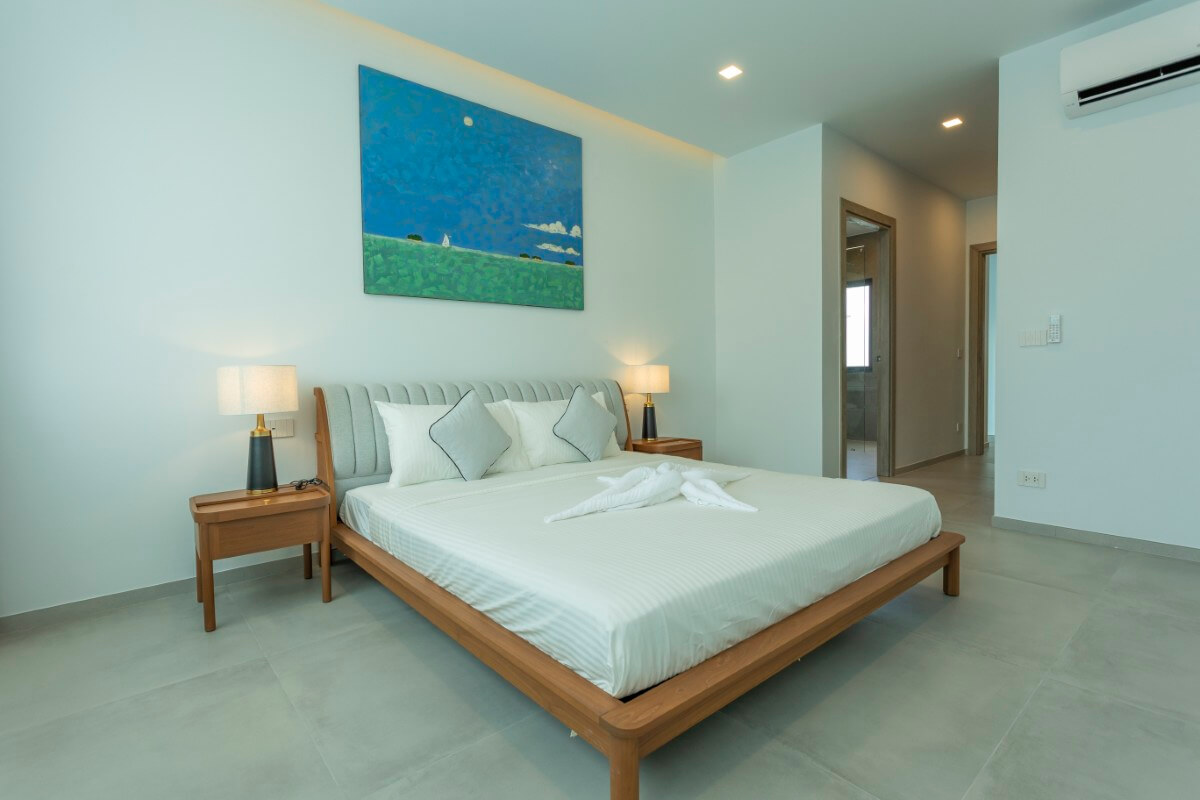These 3–4 bedroom pool villas for sale in Rawai, Phuket feature large 40 sqm swimming pools. Space, an easy indoor–outdoor flow and floor-to-ceiling openings bring in natural light and frame scenic mountain views. Clean architectural lines give the homes a bright, contemporary feel suited to long-term island living.