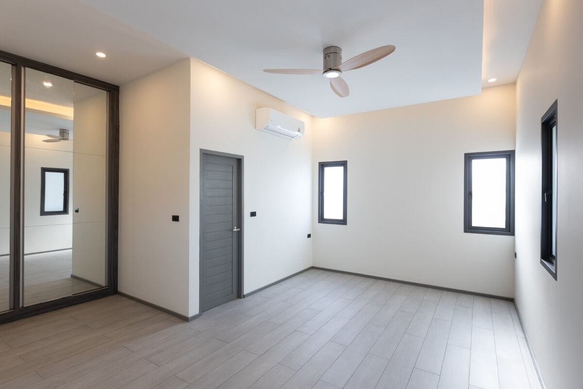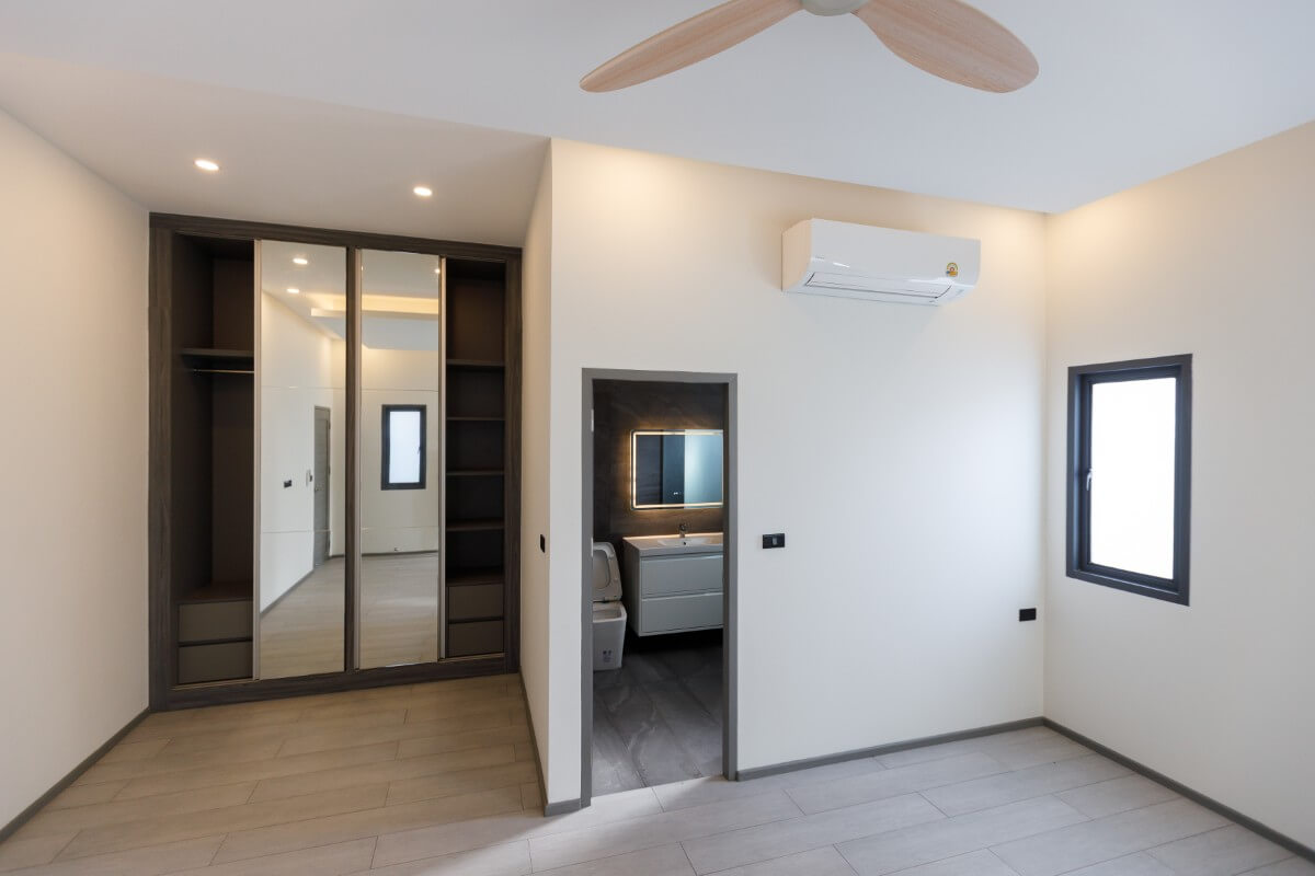 All 3 bedrooms are fitted with en-suite bathrooms and built-in storage. The L-shaped layout wraps around the pool, allowing direct outdoor access from each room and supporting a seamless indoor-outdoor connection.