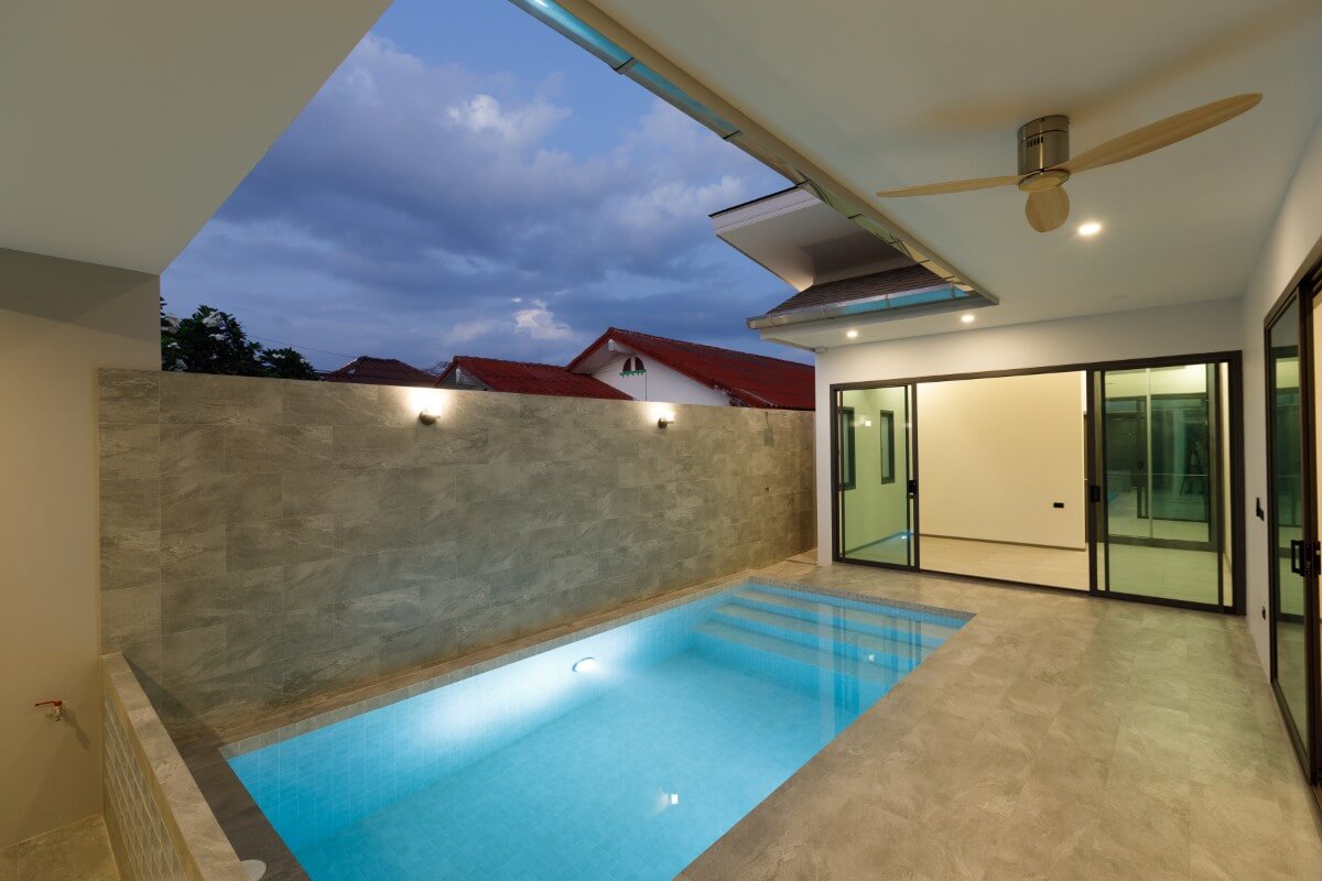 A straightforward pool villa designed for ease of use, combining simple modern design with low-maintenance materials.