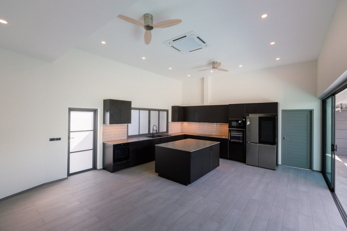 This 3-bedroom pool villa for sale in Rawai, Phuket is situated in Soi Samakki and is offered brand new by the owner. The property includes essential built-in features such as a fitted kitchen, air conditioning, and ceiling fans, while the remaining interiors are left open for buyers to furnish according to their own needs.