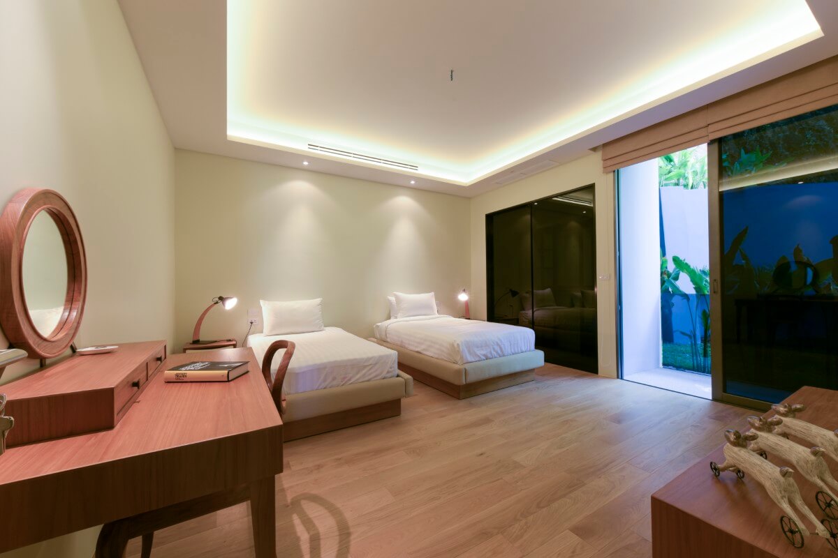 Layan Beach is just a 5–6 minute drive, offering easy access to one of Phuket’s most unspoilt beaches. The Laguna area, along with Boat Avenue, Porto de Phuket, and the heart of Cherng Talay, can be reached in approximately 12–15 minutes, providing a wide choice of dining, shopping, and entertainment options. Phuket International Airport is around a 30-minute drive.