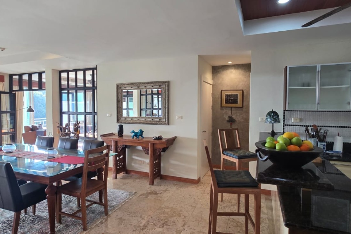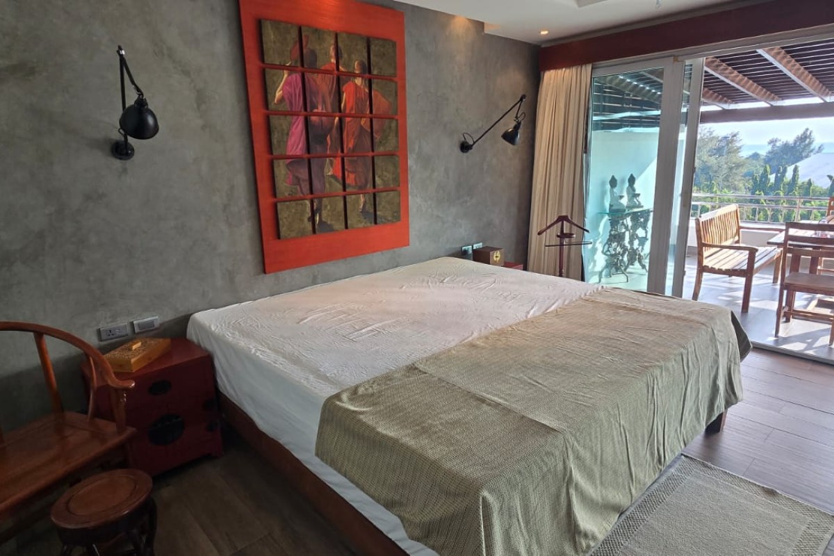 This 3-bedroom condo for sale in Panwa, Phuket is near CoCo Pier and is offered directly from the owner. The residence features select antiques and distinctive furniture and decorative pieces, presenting a fully ready-to-move-in home. It enjoys elevated east-facing views across Cape Panwa and Makham Bay, with sunrise vistas visible from the living areas each morning. The condo suits permanent family living or investment with long-term rental income potential.
