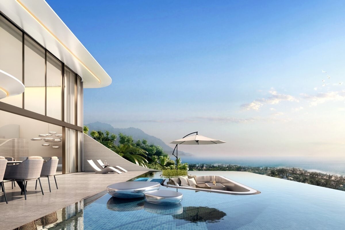 Set on a gentle hillside, each villa occupies a generous land plot from 546.06 to 957.54 sqm, overlooking the Andaman Sea.