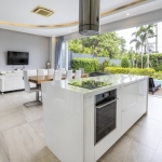 Positioned on a generously sized plot of 542 sqm, the ground floor opens directly to the pool deck, where daybeds and loungers surround the pool. A small lawn garden nearby is perfect for children.