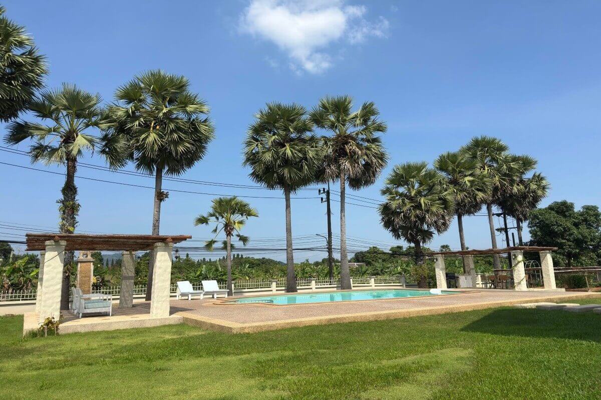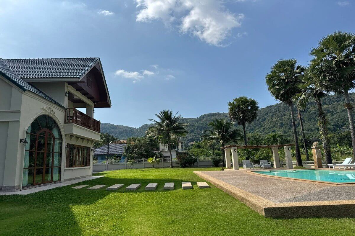 Set on a fully fenced 2,028 sqm corner plot slightly elevated above the road, offering added privacy, a large garden space with mature trees, tropical plants, a herb garden and direct views of the Big Buddha.