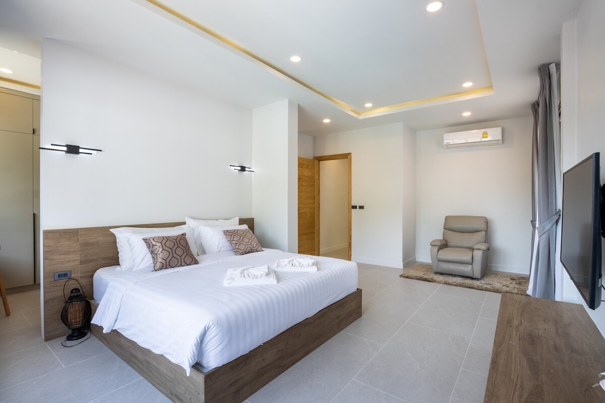 This 5-bedroom villa for sale in Rawai, Phuket was renovated in 2025 and features a 12m private swimming pool. The design is modern tropical, complemented by scenic mountain views. The setting feels relaxed and open, with plenty of space for shared activities and quiet corners for downtime.